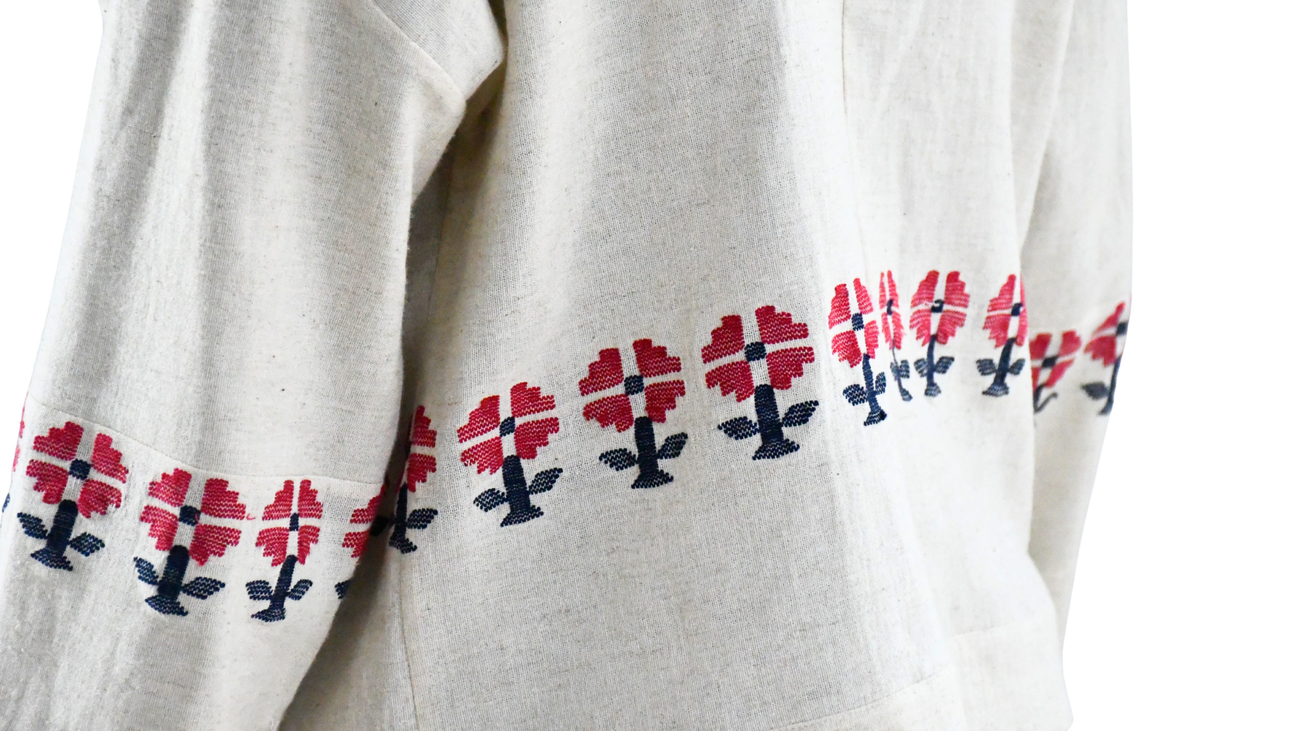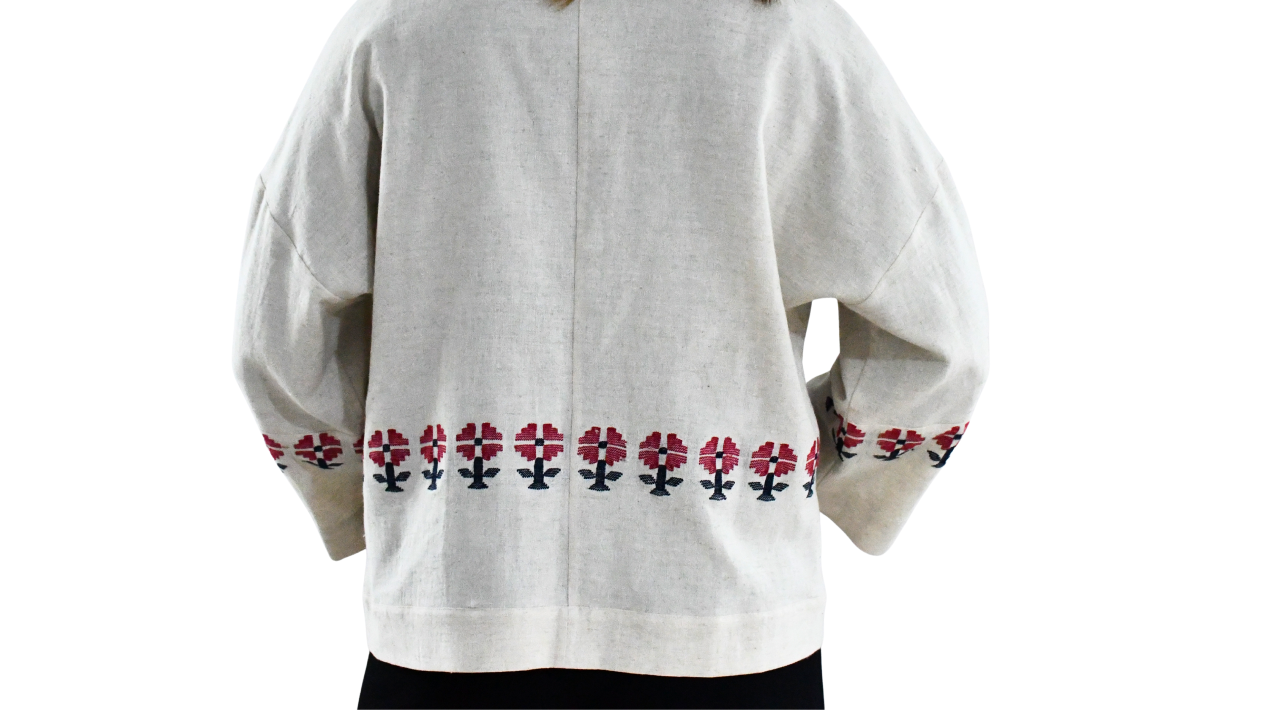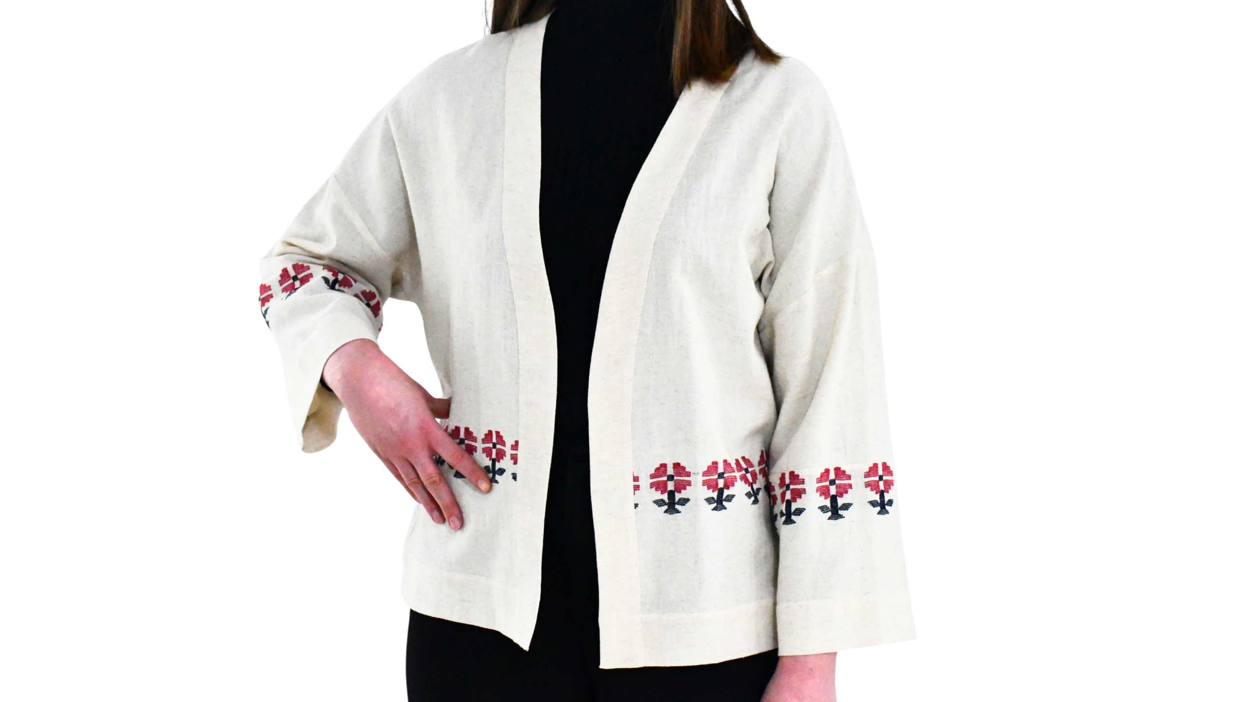 Derbent kumaşı ile kesilen kimononun kol ağzı ve ön arka yaka çevresine derbent dokuma desenleri ile süslenmiştir.